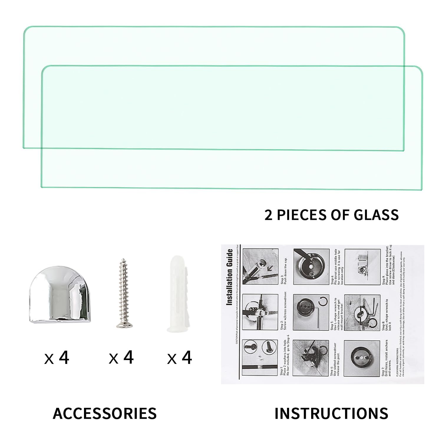 - EASY INSTALLATION - Quick and easy to install, the package comes with mounting hardware, 2 PCS of the glass and installation instruction that help take the guesswork out of installation. NOTE: If you have problems or there is any parts missing in the package, please feel free to contact us. You can get feedback within 12 hours