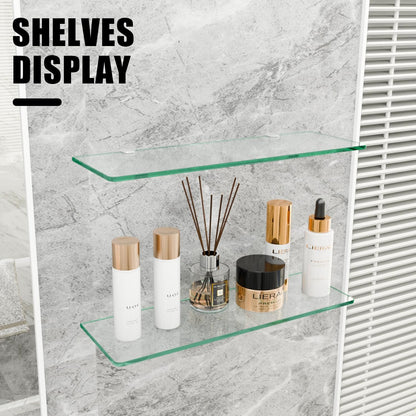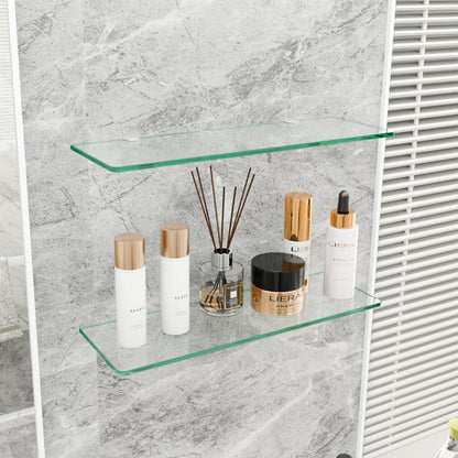 23.6" Wx 5.12" D x 0.24" H - 2 PCS Floating Shelves for Wall, Tempered Glass Shelves for Bathroom, Living Room, Bedroom, Office, Toilet, Kitchen Decor