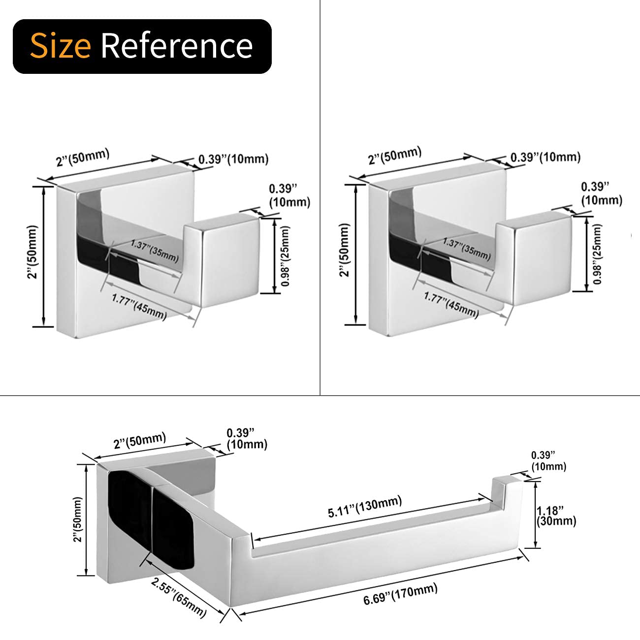 - MODERN & SAFE DESIGN - Unique SQUARE shape designed with clean lines and sturdy construction, chamfering edges protect your body from scratching, the 3-pieces bathroom accessories set provide everyday efficiency with style.